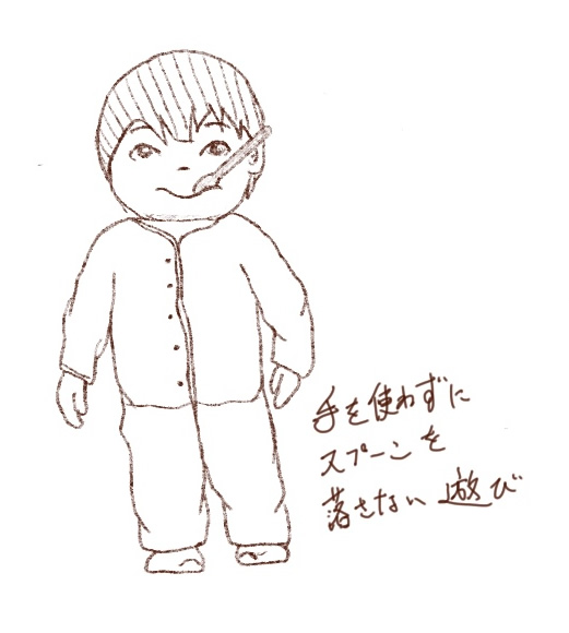 - スプーンをくわえて落とさない遊び。