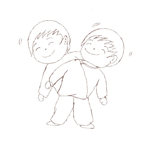 上半身をぶんぶん横に振り出す。 満面の笑みで。